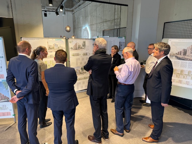 Am 15.10.2025 fand die Preisgerichtssitzung des Qualifizierungsverfahrens für das Baufeld Hafenblick II im Mainzer Zollhafen statt. Die Fach- und Sachpreisrichter hatten die Wettbewerbsbeiträge von fünf Büros zu beurteilen. Als überzeugenster Wettbewerbsbeitrag wurde die Arbeit von florian krieger – architektur und städtebau gmbh mit dem 1. Preis gekürt. Auf Grundlage dieser Arbeit wird nun der Baugenehmigungsantrag erstellt und das Vorhaben realisert. Geplant sind auf den insgesamt 6.577 Quadratmeter großen Teilflächen Ost und West 200 Einheiten, die als Mietwohnungen genutzt werden sollen.